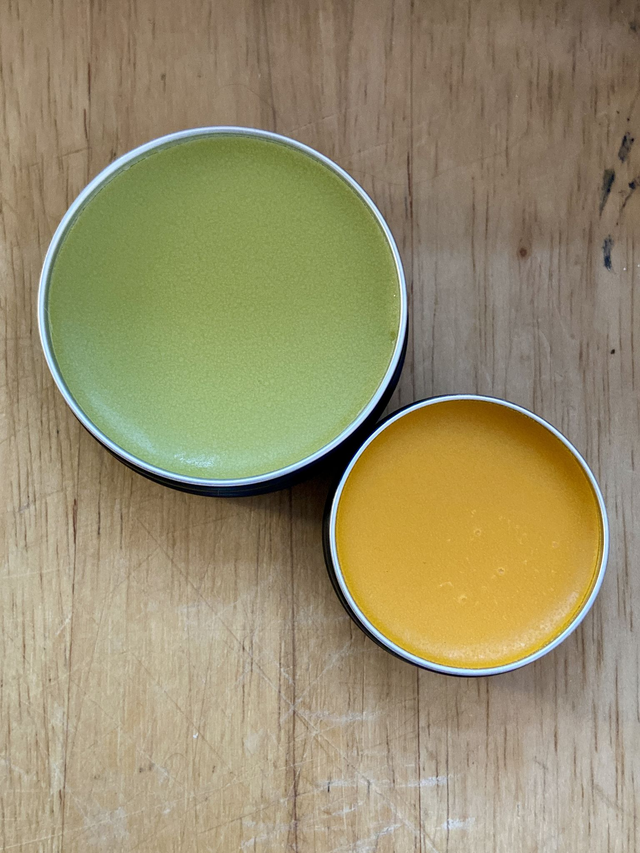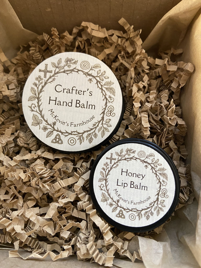 A practical, nourishing duo for dry hands and lips, made using organic herbal-infused oils, organic butters, beeswax, and honey.